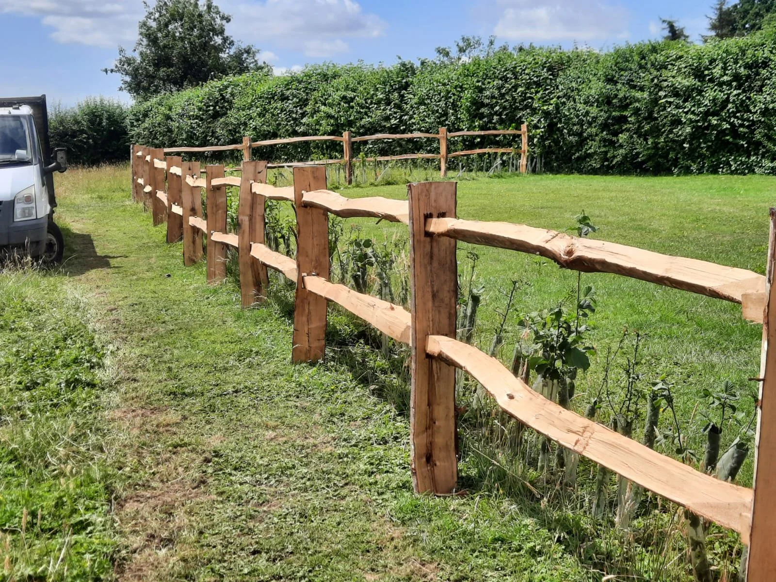 Chestnut post & rail made inhouse with locally sourced Kentish chestnut wood.